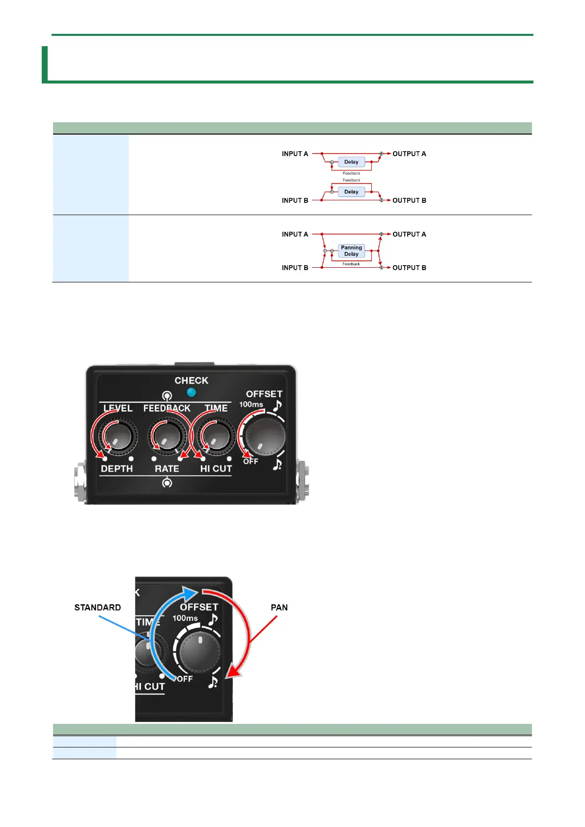 Turn the [OFFSET] knob to the type of stereo delay effect you wish to set.