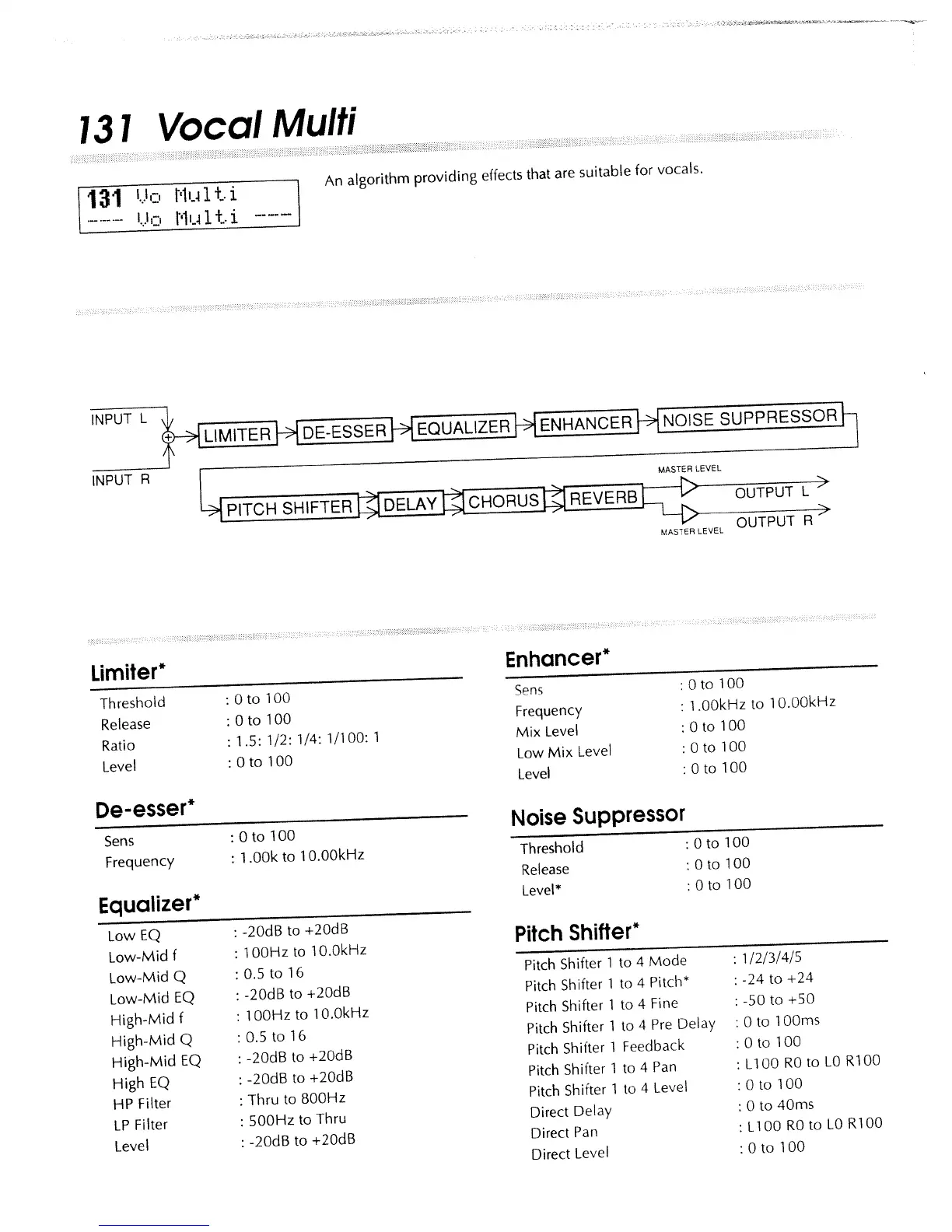 Boss SE-70 - 131 Vocal Multi Algorithm; Vocal Multi Limiter Parameters; Vocal Multi De-Esser Parameters; Vocal Multi Equalizer Parameters