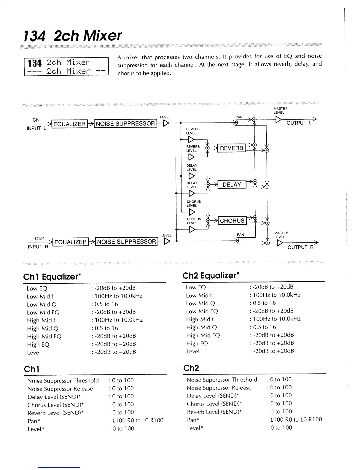 Boss SE-70 - 134 2 ch Mixer Algorithm; 2 ch Mixer Ch1 Equalizer Parameters; 2 ch Mixer Ch2 Equalizer Parameters; 2 ch Mixer Channel 1 Parameters