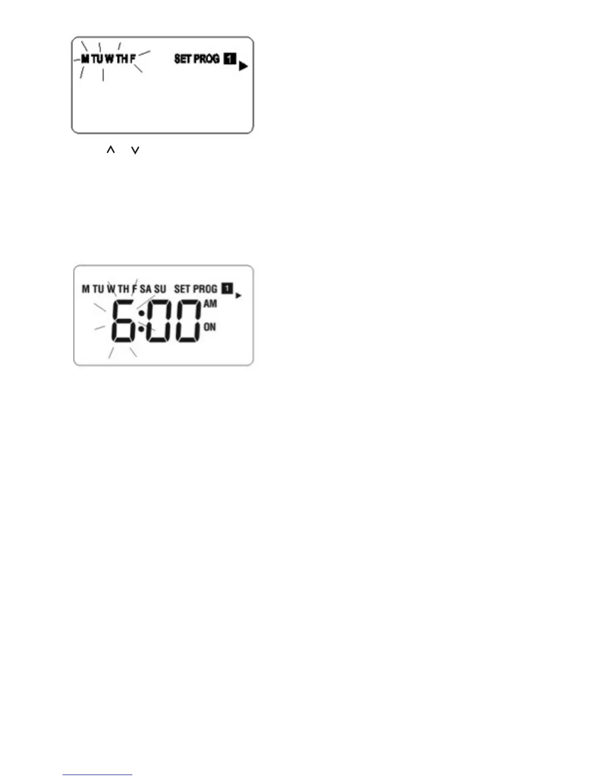 The Monday and “SET PROG” are displayed. All other indicators are cleared. The day of the