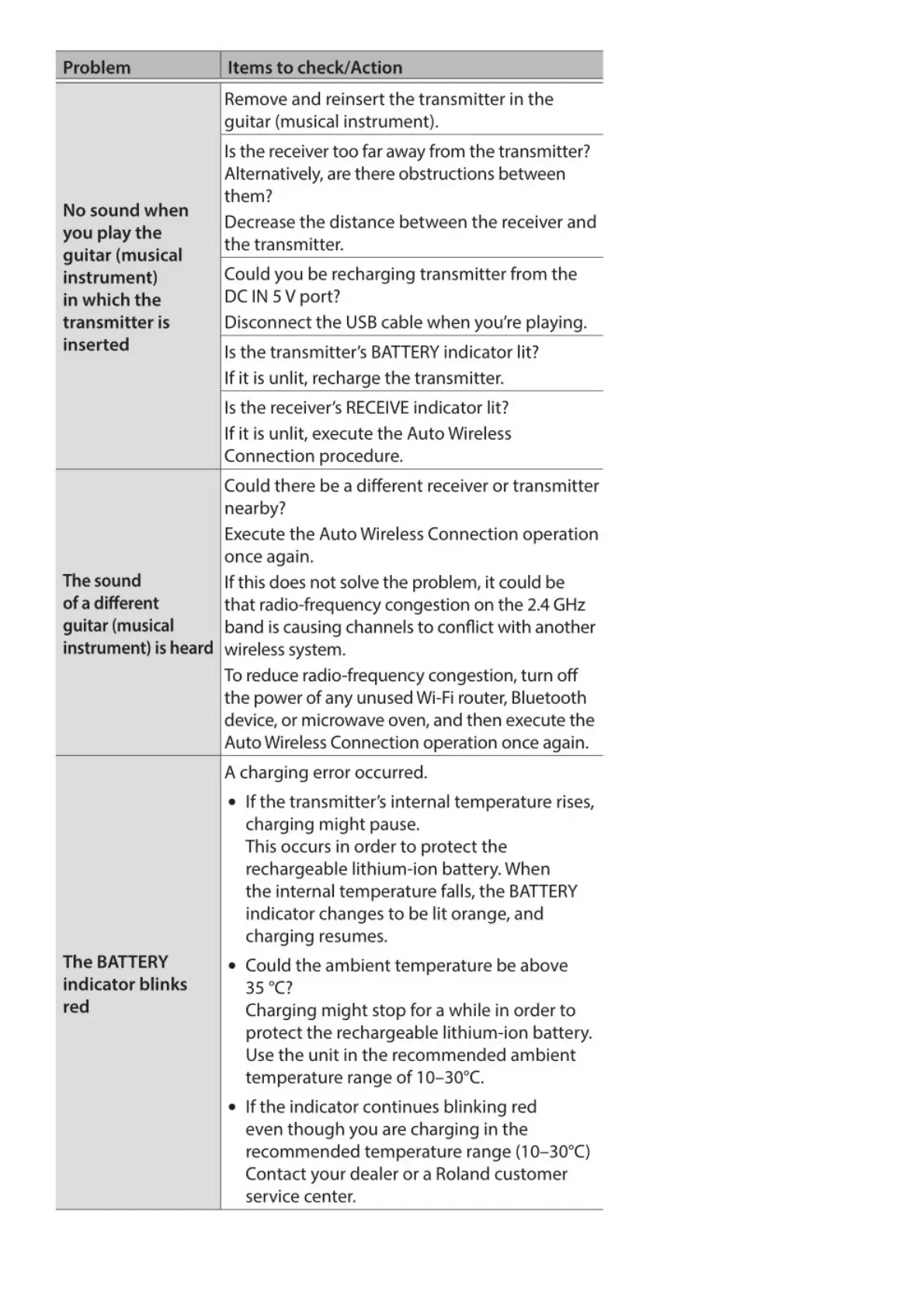 Boss WL-20 - Troubleshooting Table