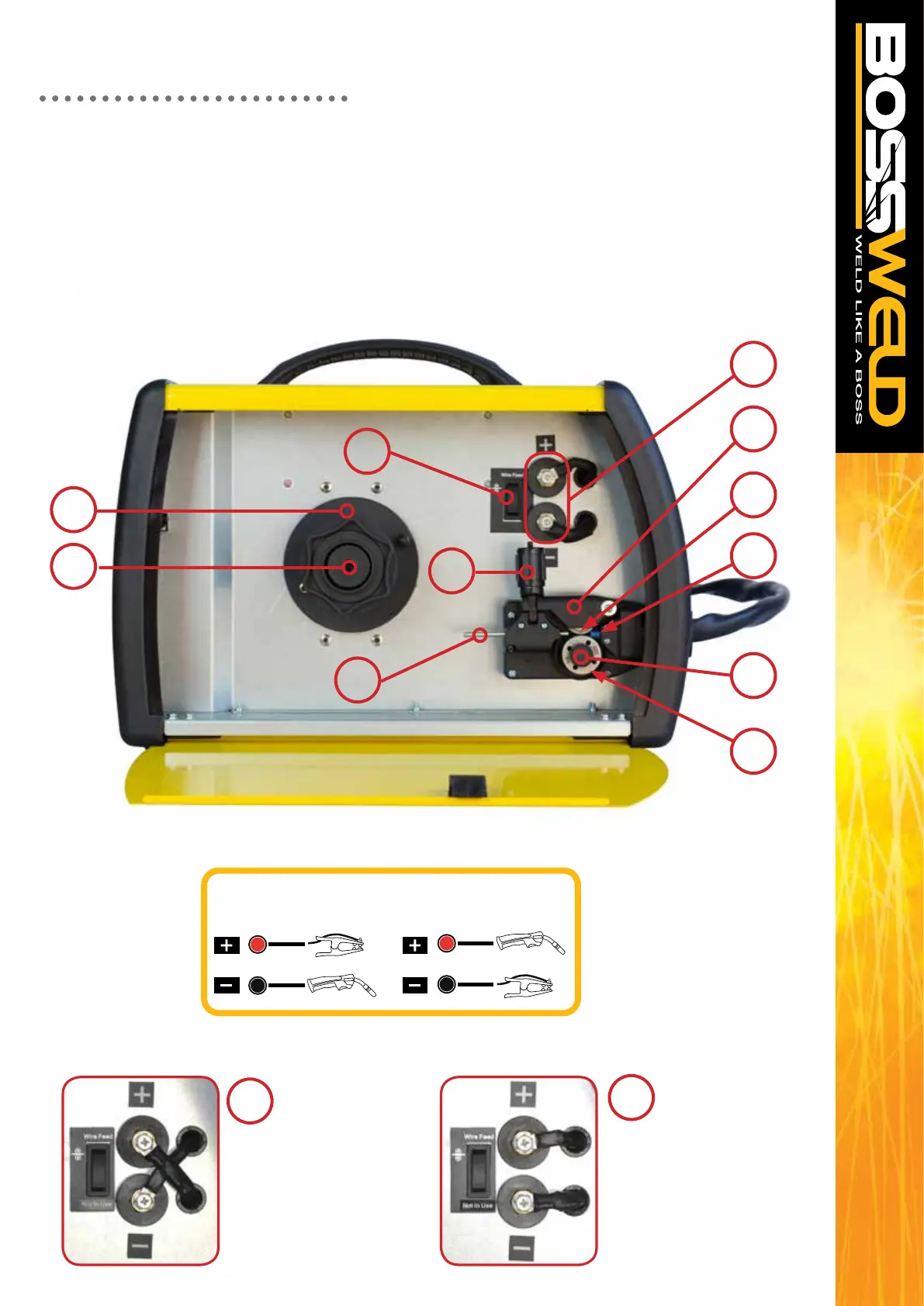 BossWeld M150 - Side Panel Components and Polarity Settings; Side Panel Internal Components; Setting Machine Polarity for Welding