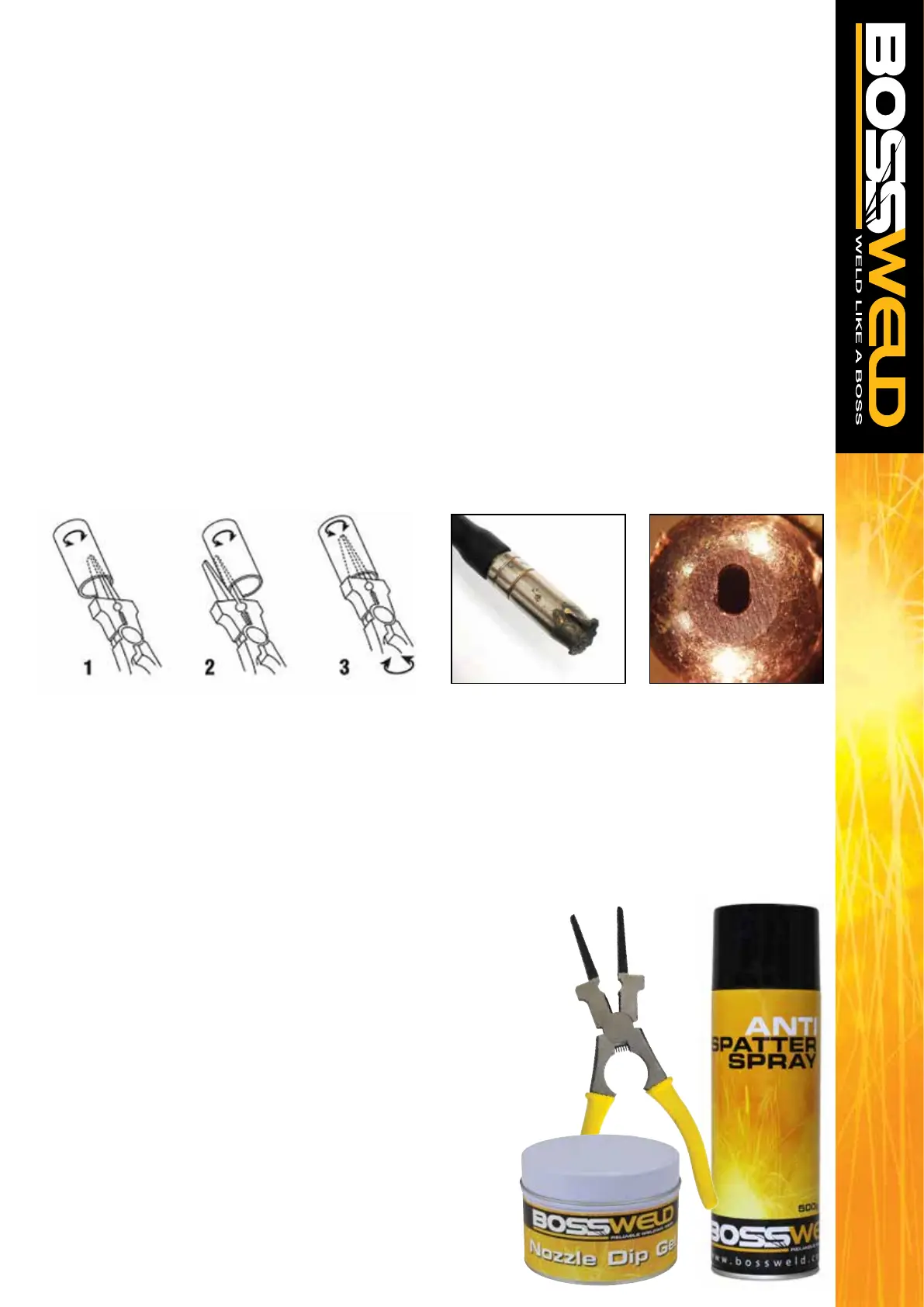 Spatter removal from inside and outside the nozzle using MIG pliers