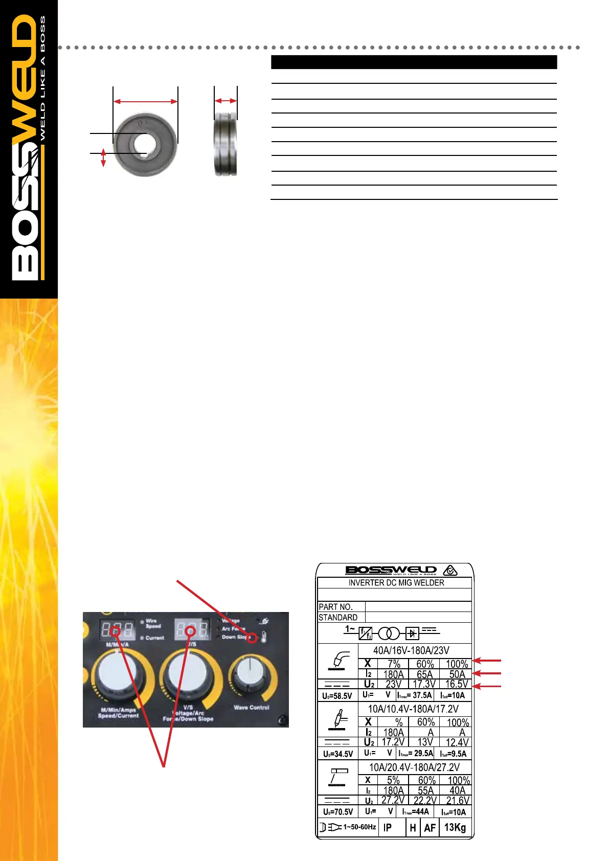 NOTE MIG SETTINGS SHOW BELOW : Amps refer to the Current setting