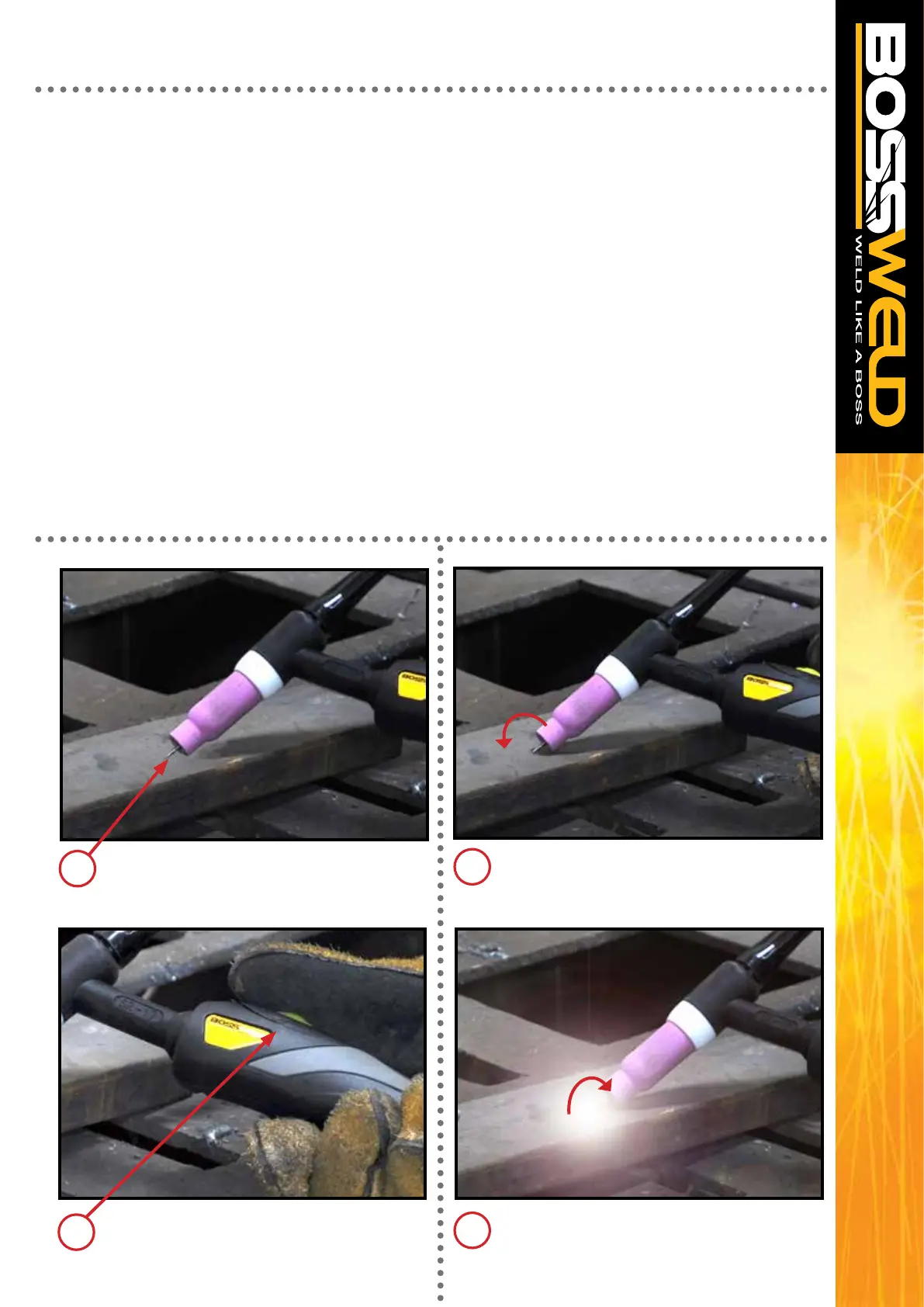 2. The set pre-gas ow starts and the arc starts and will upslope to the amperage selected on