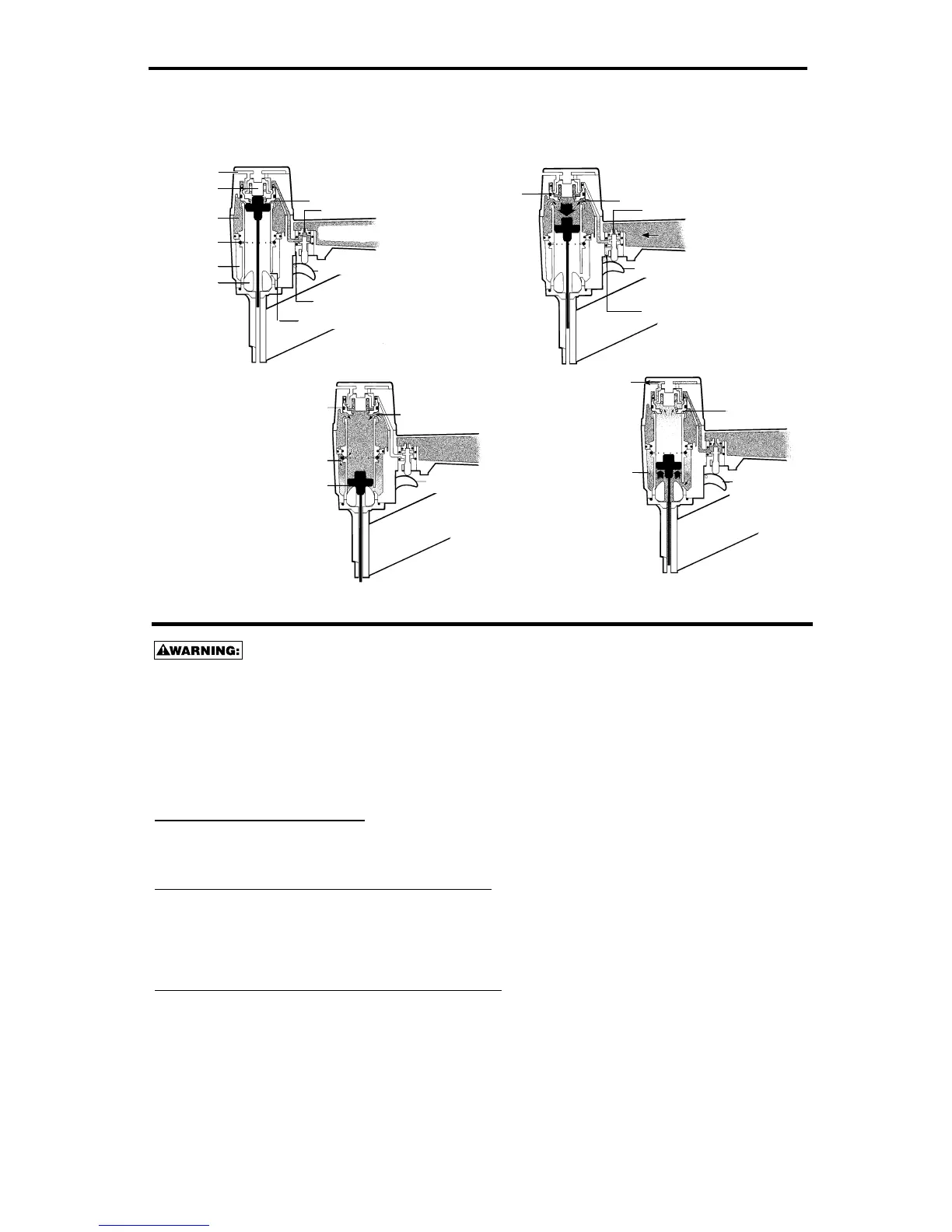 The following illustrations show the four functional cycles that occur when the tool is operated to