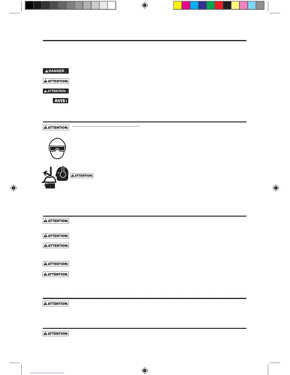 de l'entretien de cet outil. Des lunettes de protections sont requises pour protéger contre les