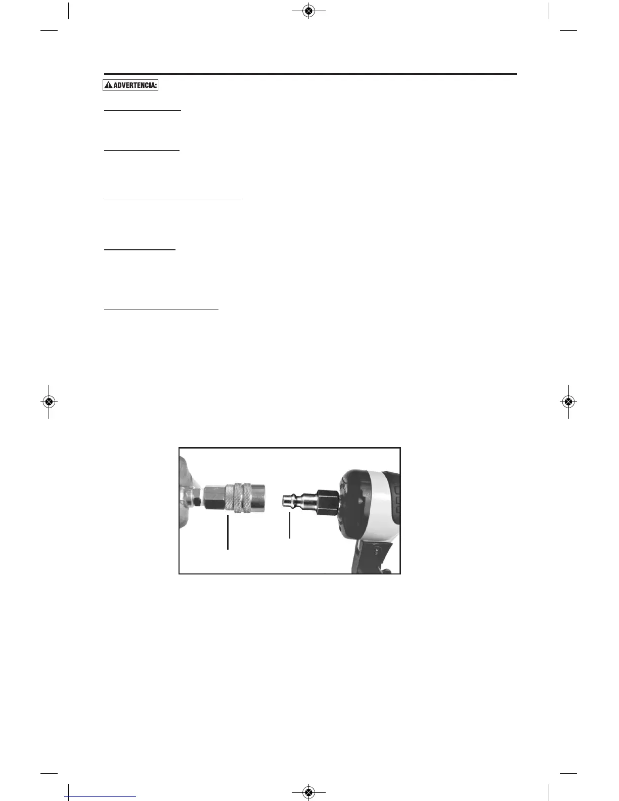 a manguera de suministro debe contar con un conector de “desconexión rápida” del enchufe macho en la herramienta.