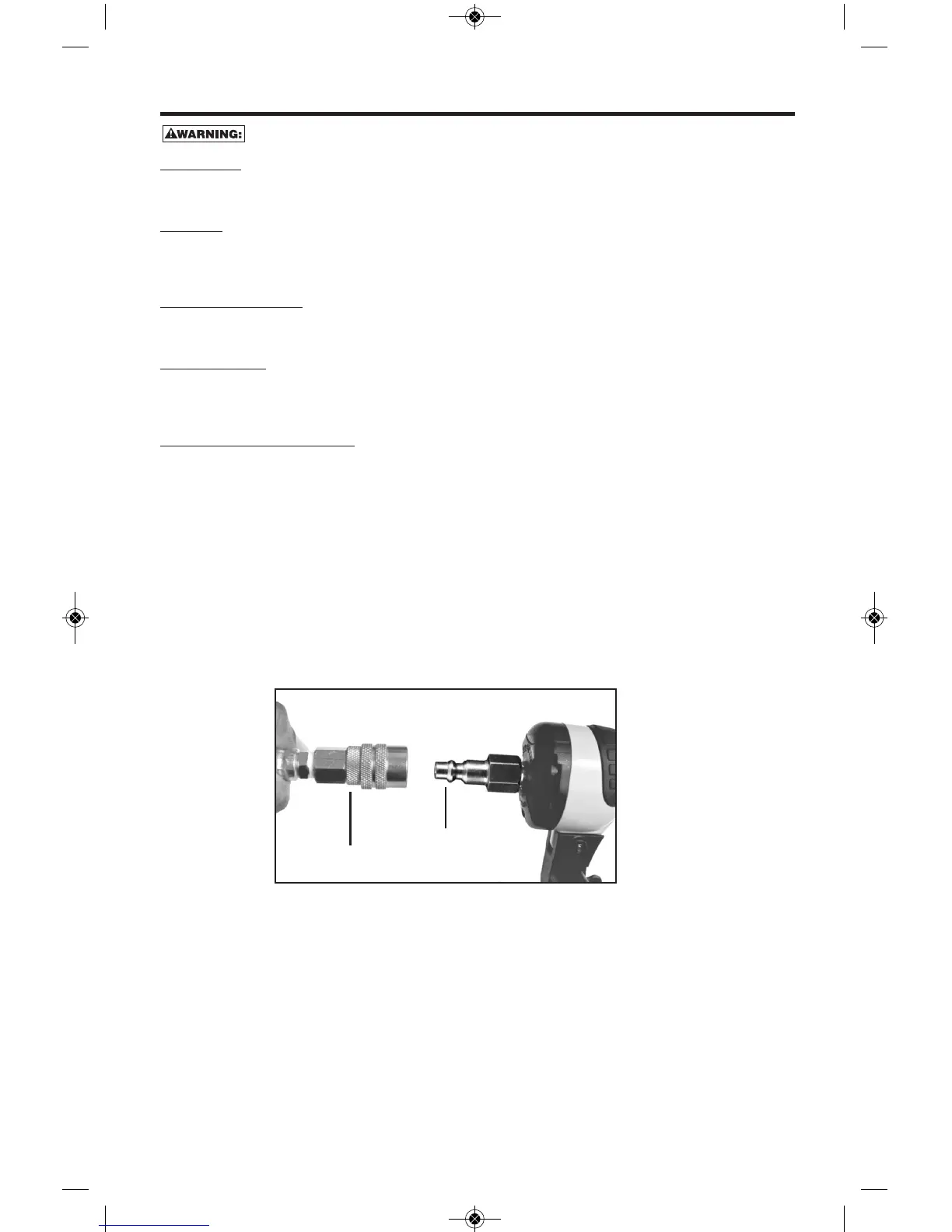 operating pressure for safe operation of this tool. Do not connect this tool to air pressure which can potentially