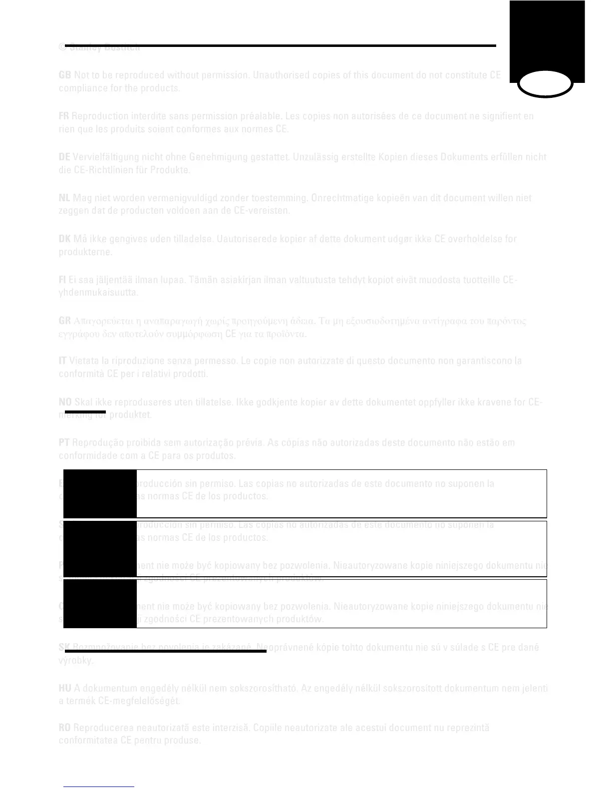 SK Rozmnožovanie bez povolenia je zakázané. Neoprávnené kópie tohto dokumentu nie sú v súlade s CE pre dané
