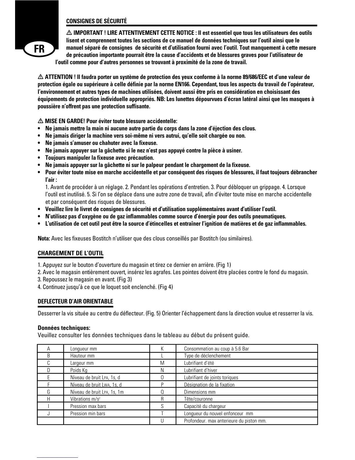 Nota: Avec les fixeuses Bostitch n’utiliser que des clous conseillés par Bostitch (ou similaires).