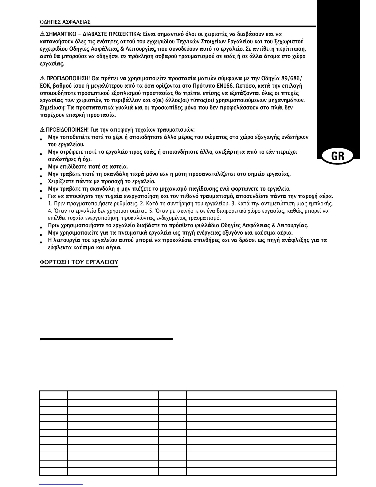 εγχειριδίου Οδηγίες Ασφάλειας & Λειτουργίας που συνοδεύουν αυτό το εργαλείο. Σε αντίθετη περίπτωση,