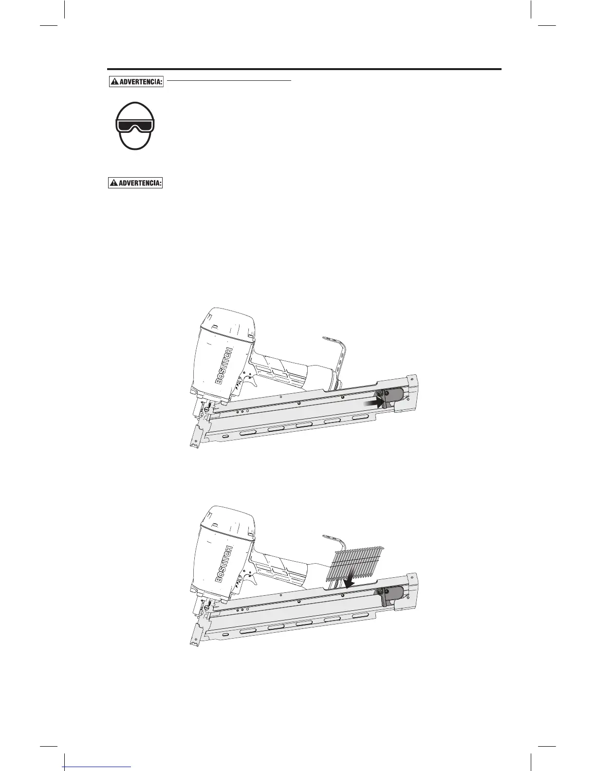 NOTA: Use solamente clavos recomendados para usarse con las clavadoras enmarcadoras de BOSTITCH o