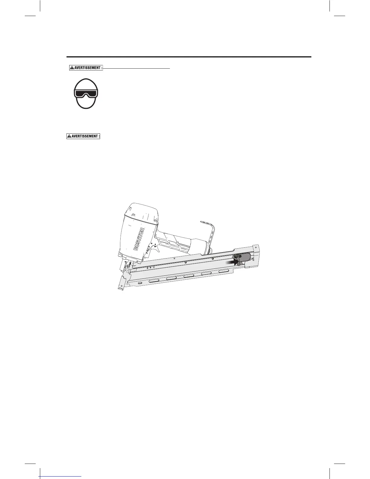 • Ne jamais placer la main ou toute autre partie du corps dans la zone d’éjection des clous