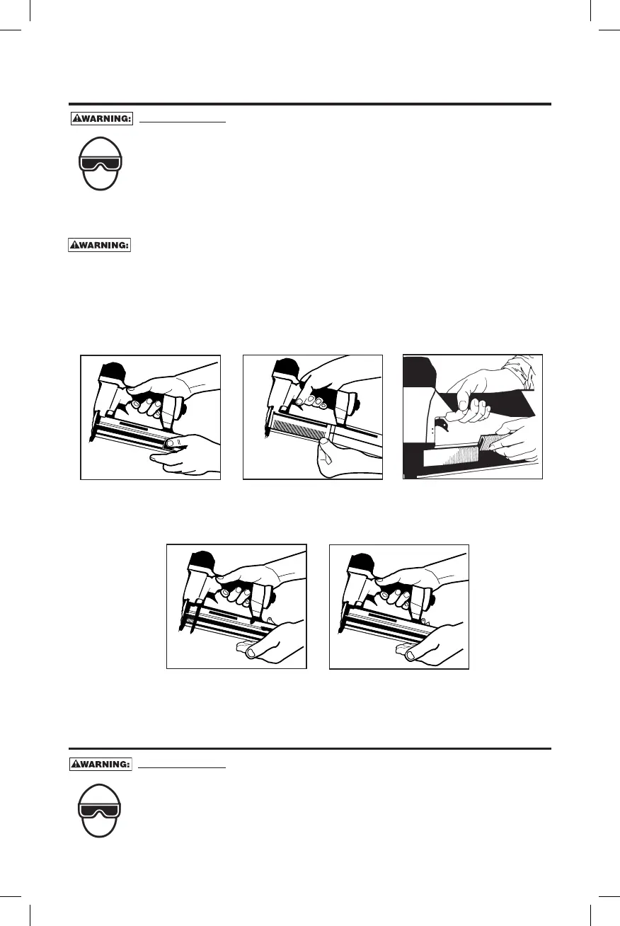• Do not pull the trigger or depress the trip mechanism while loading the tool.