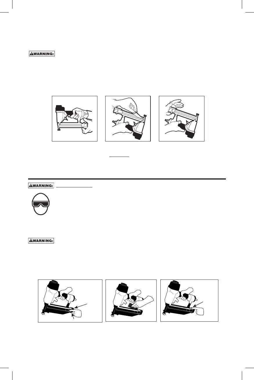 • Do not pull the trigger or depress the trip mechanism while loading the tool.