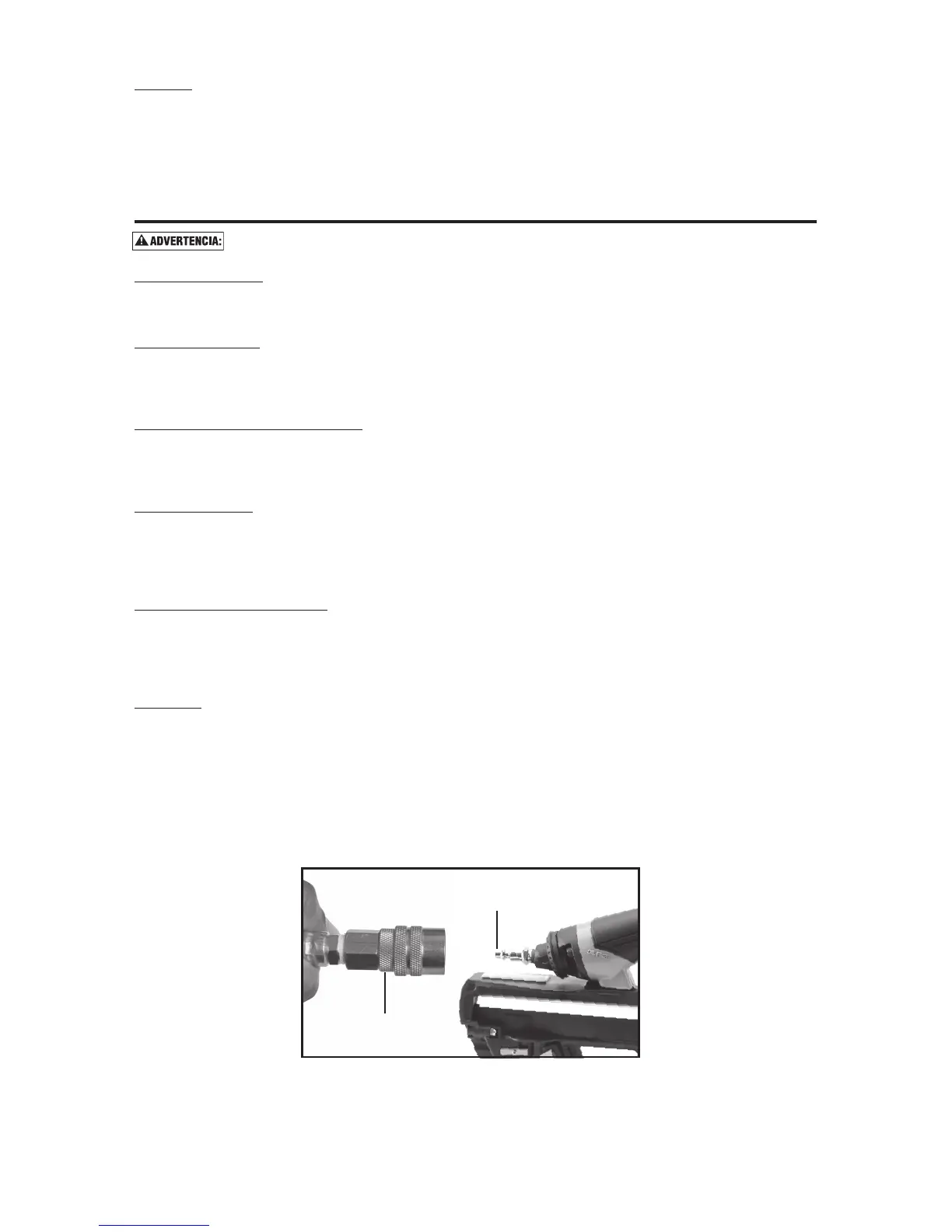 La manguera de suministro debe contar con un conector de “desconexión rápida” del enchufe macho en la herramienta.