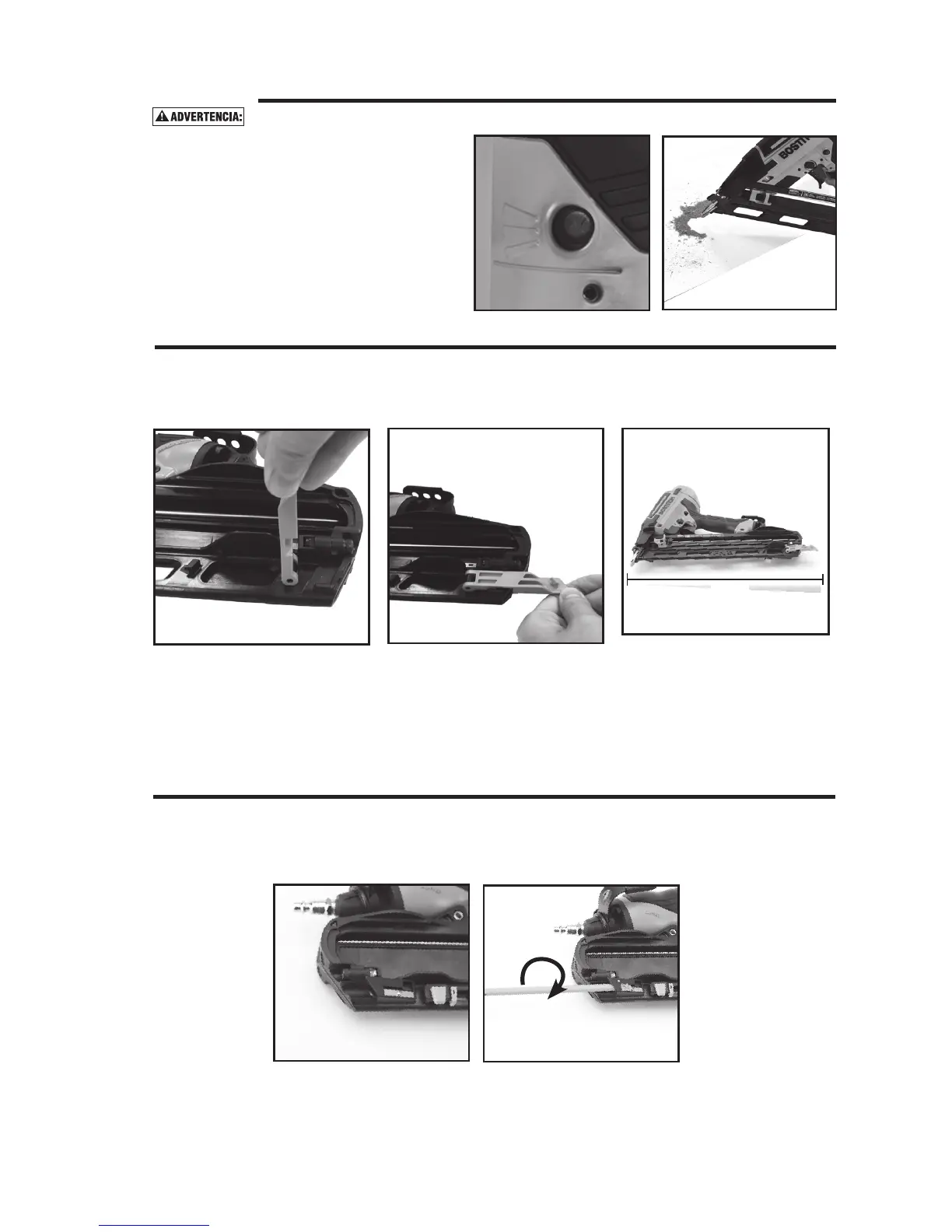 el frente de la herramienta. Suelte el botón para