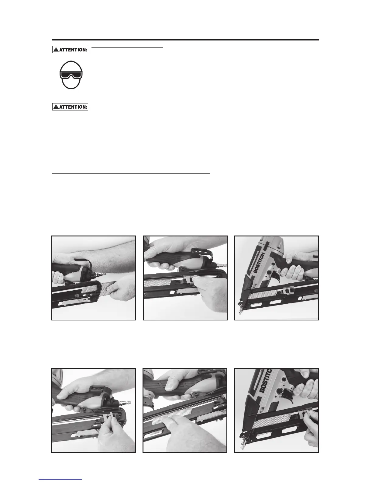 • N’appuyez jamais sur la gâchette sans que le nez de pose soit dirigé vers la surface de travail.
