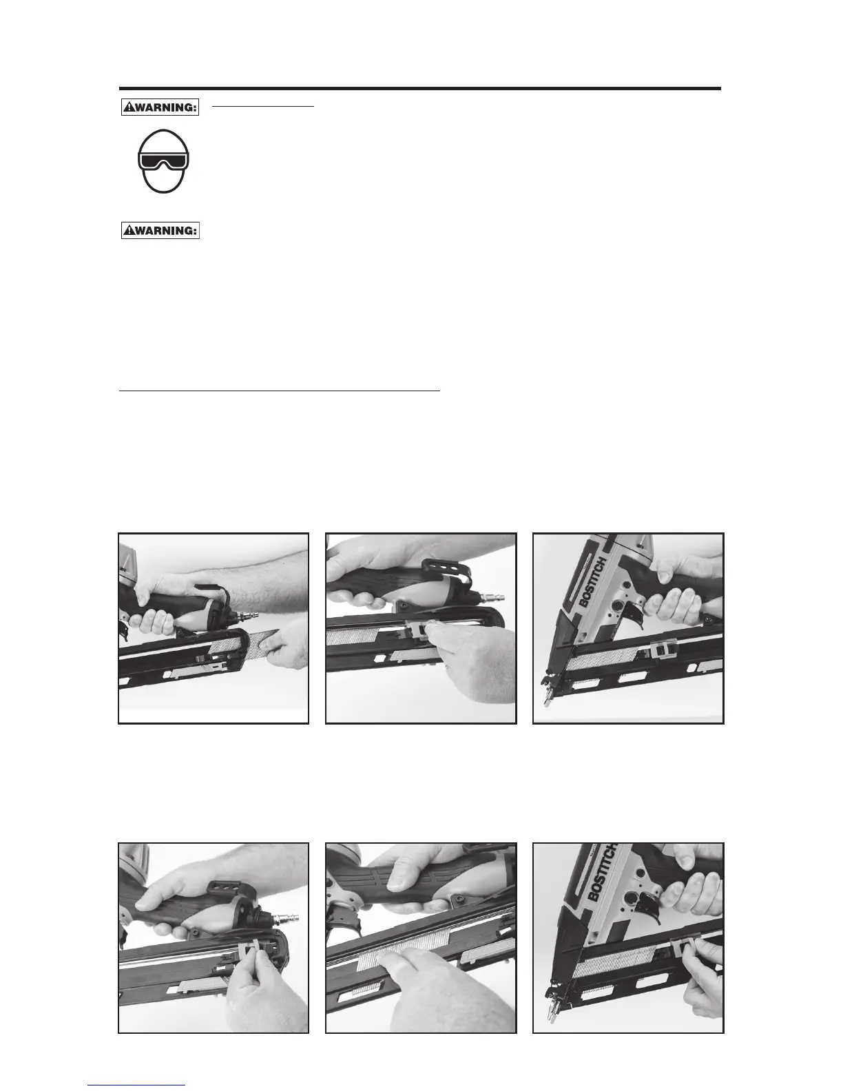 • Do not pull the trigger or depress the trip mechanism while loading the tool.