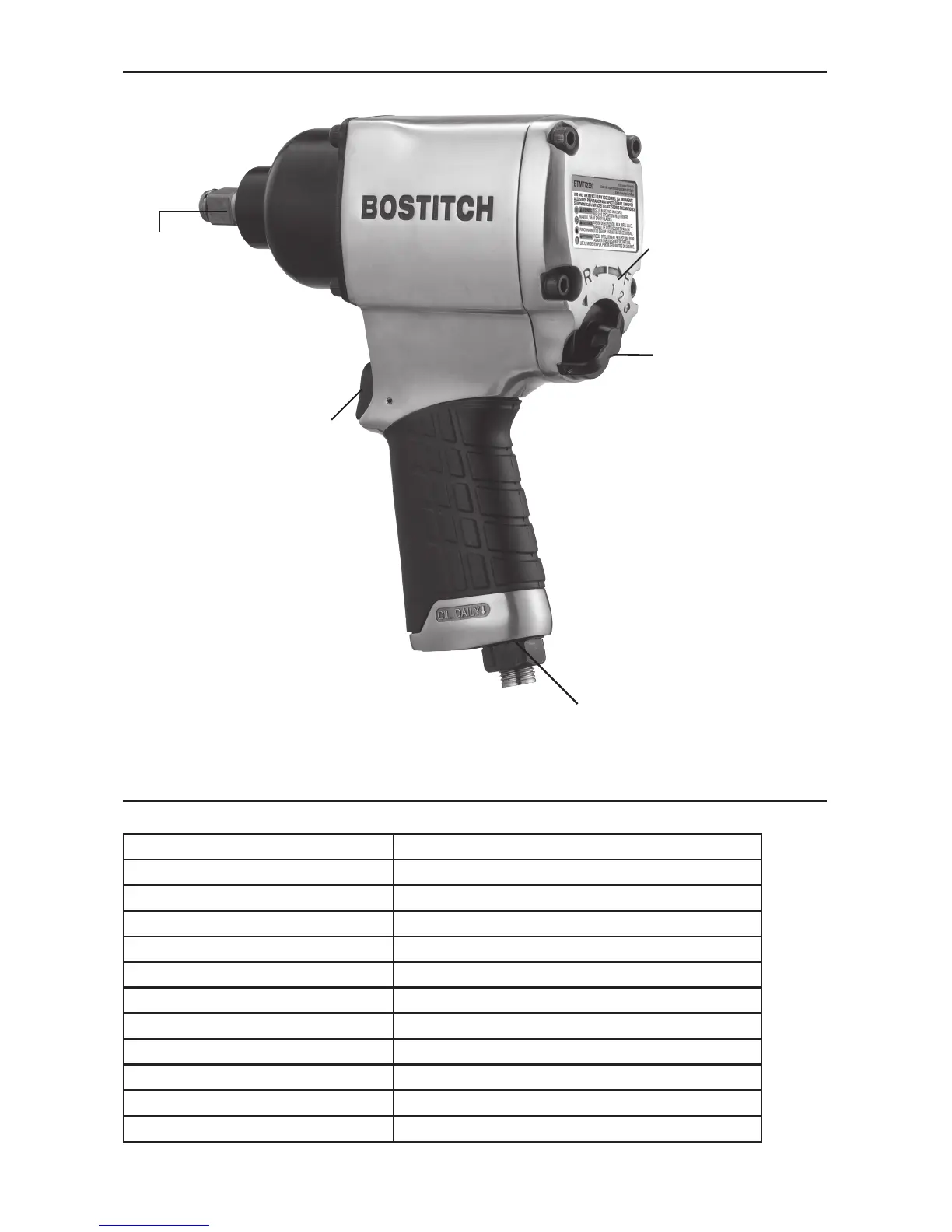 Bostitch BTMT72391 - Composants de Loutil; Especificacispécifications de Loutil