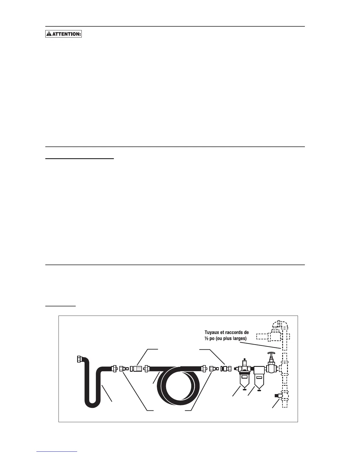 Le diamètre intérieur minimum du boyau est être de 3/8 po et les raccords doivent avoir les mêmes dimensions