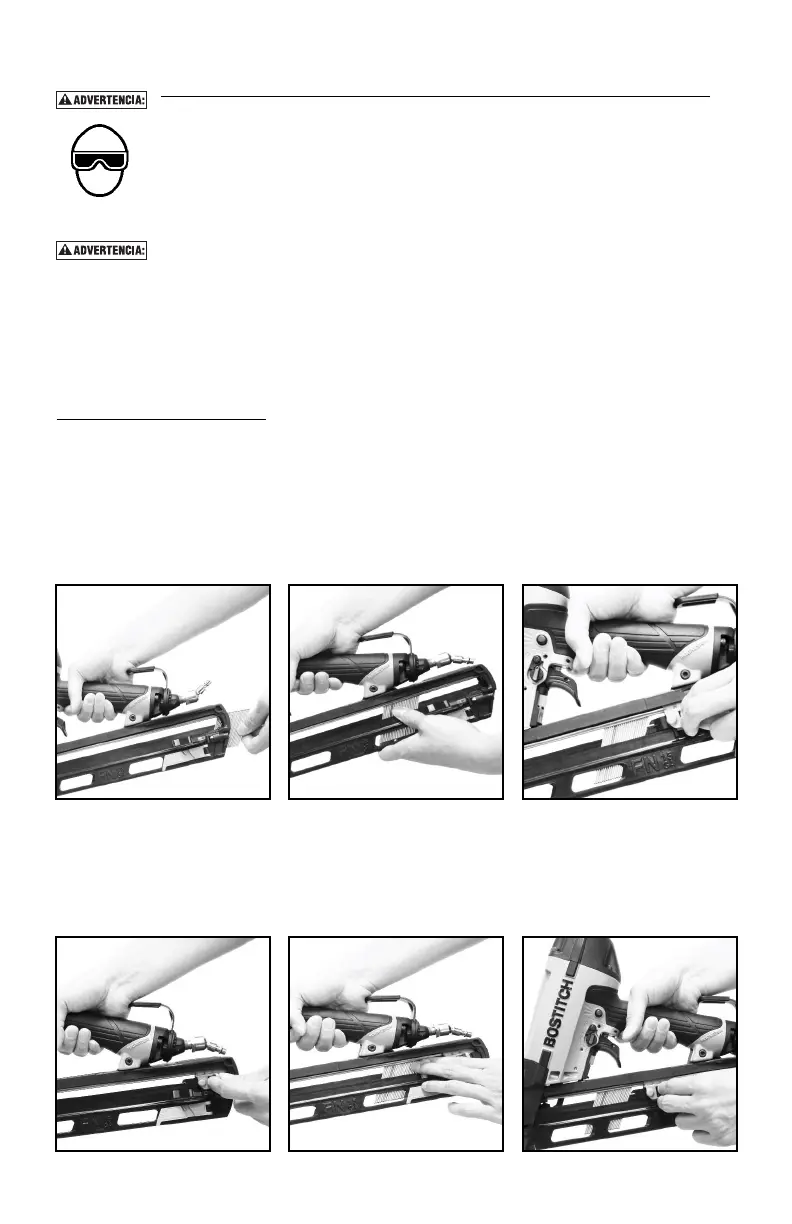 •No accione el gatillo ni oprima el mecanismo de disparo mientras carga la herramienta.