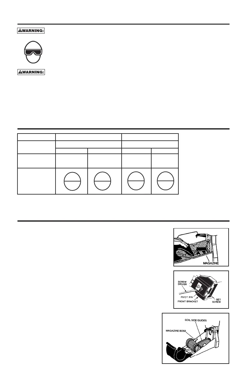 tool. Eye protection is required to guard against flying fasteners and debris, which could