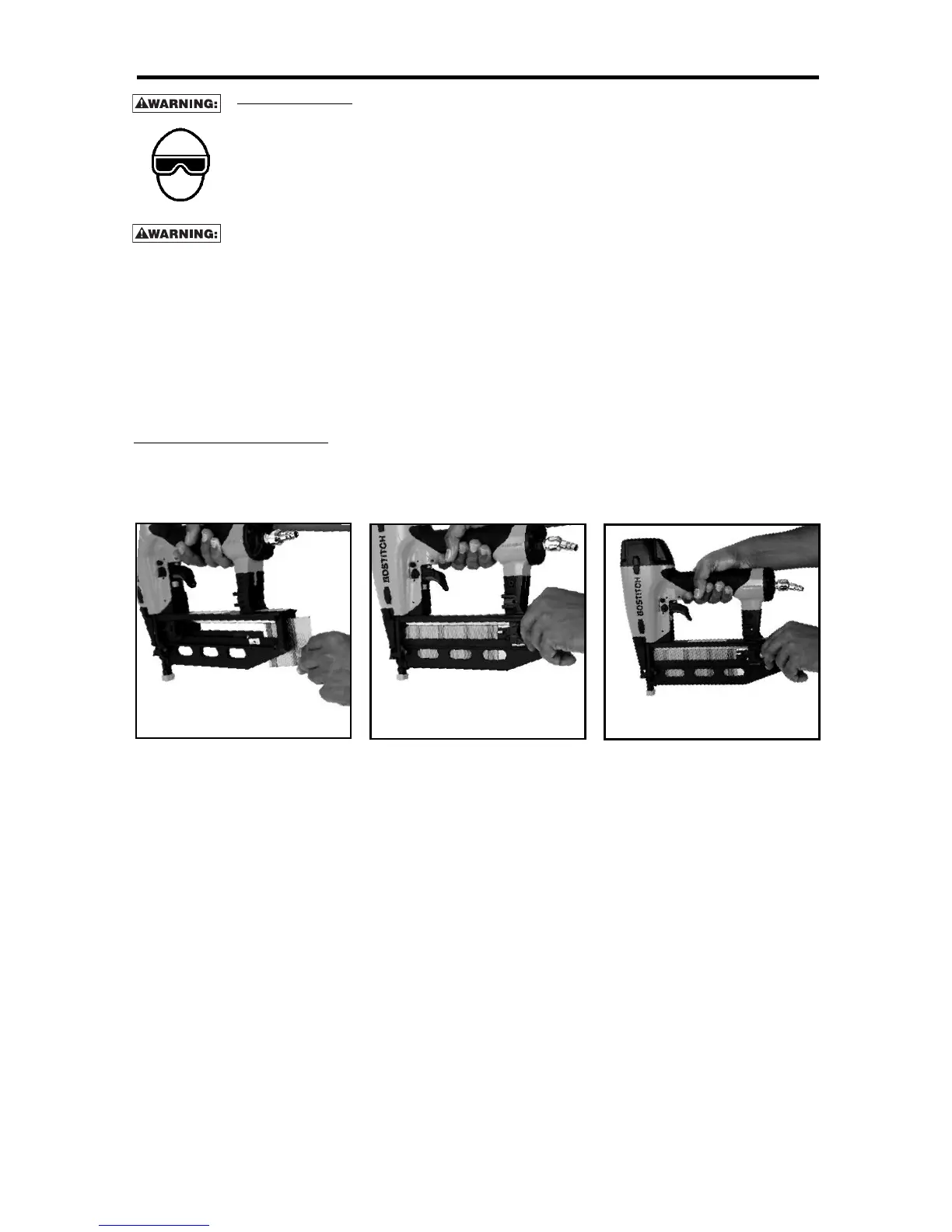 • Do not pull the trigger or depress the trip mechanism while loading the tool.