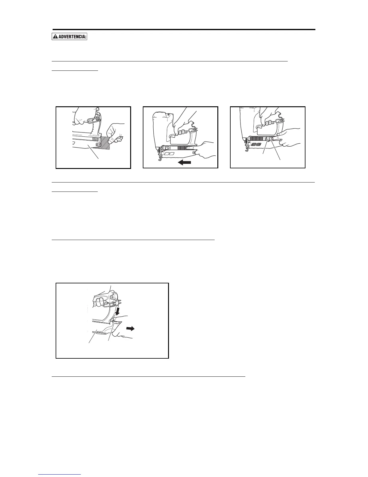 unca toque el gatillo ni presione el brazo de contacto mientras carga los clavos. Mantenga