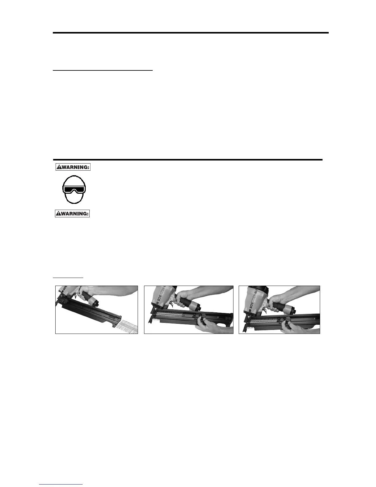 NOTE:Use only nails recommended for use in BOSTITCH Framing nailers or nails which meet the