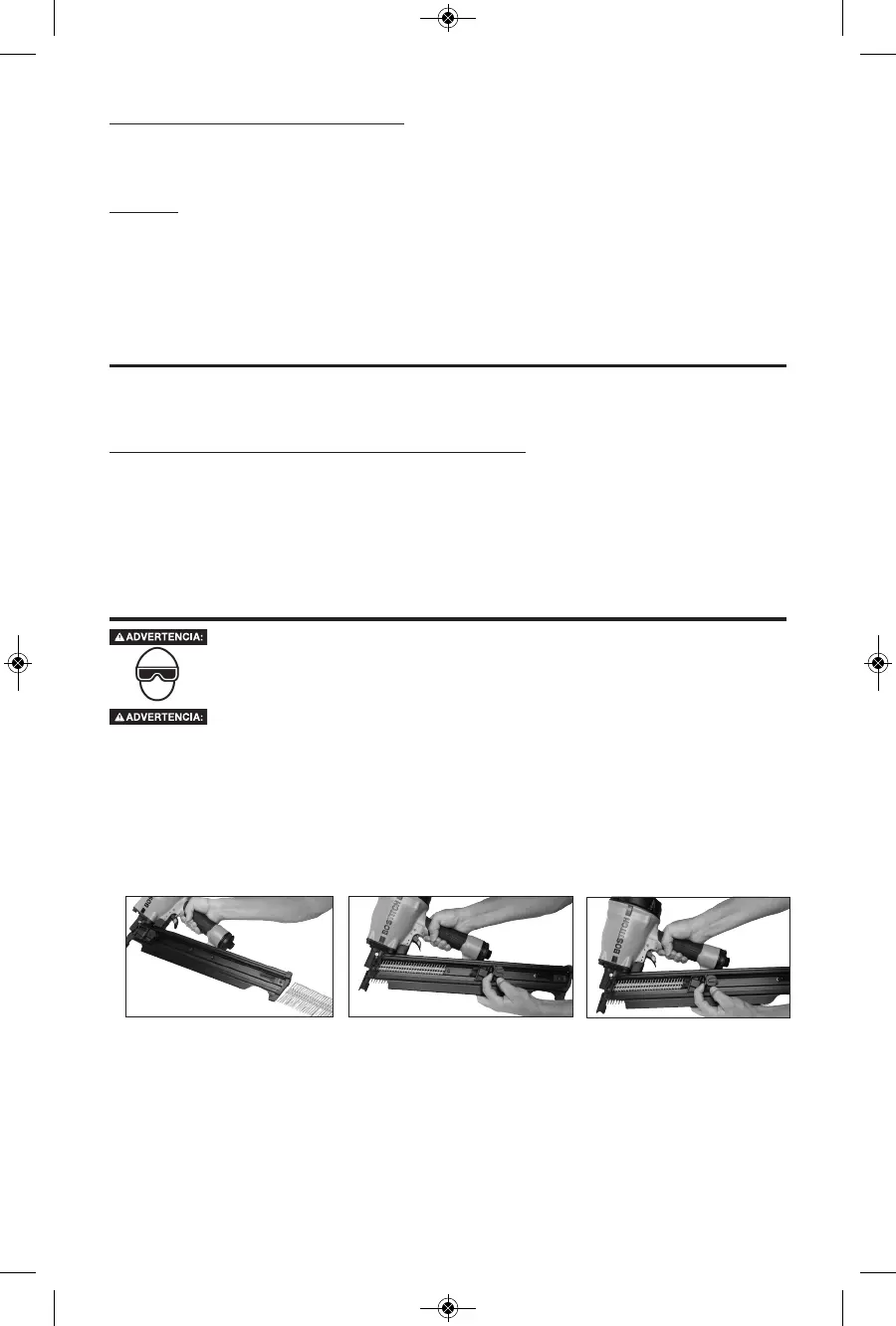 • N’appuyez jamais sur la gâchette ni n’abaissez le mécanisme de butée en chargeant l’outil.