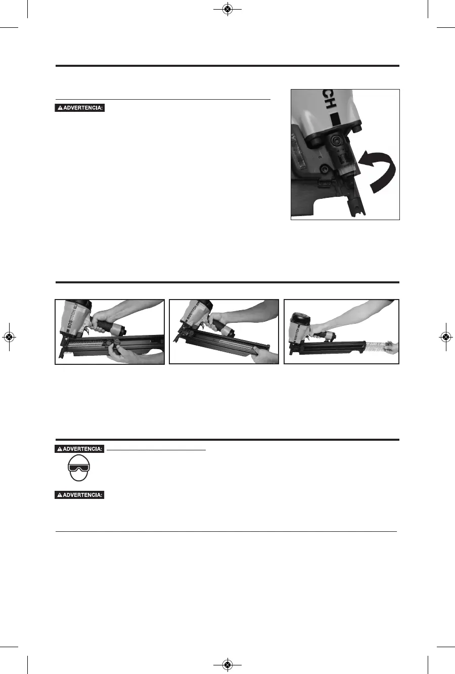 4. Enfoncez la butée des clous. 5. Glissez les clous hors du magasin.