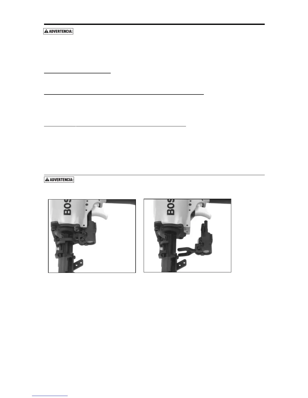 alta. Los resultados serán: funcionamiento lento, fijaciones mal dirigidas o menor potencia de impulso. Antes de evaluar los