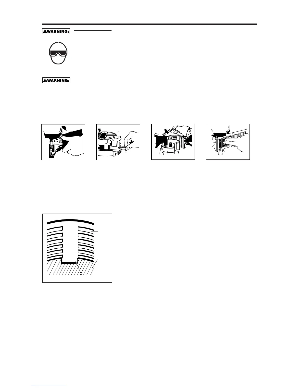 • Do not pull the trigger or depress the trip mechanism while loading the tool.