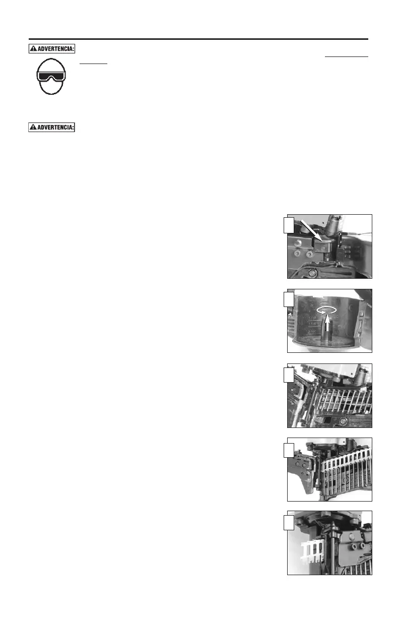 • No hale el gatillo ni oprima el mecanismo de disparo al cargar la herramienta.