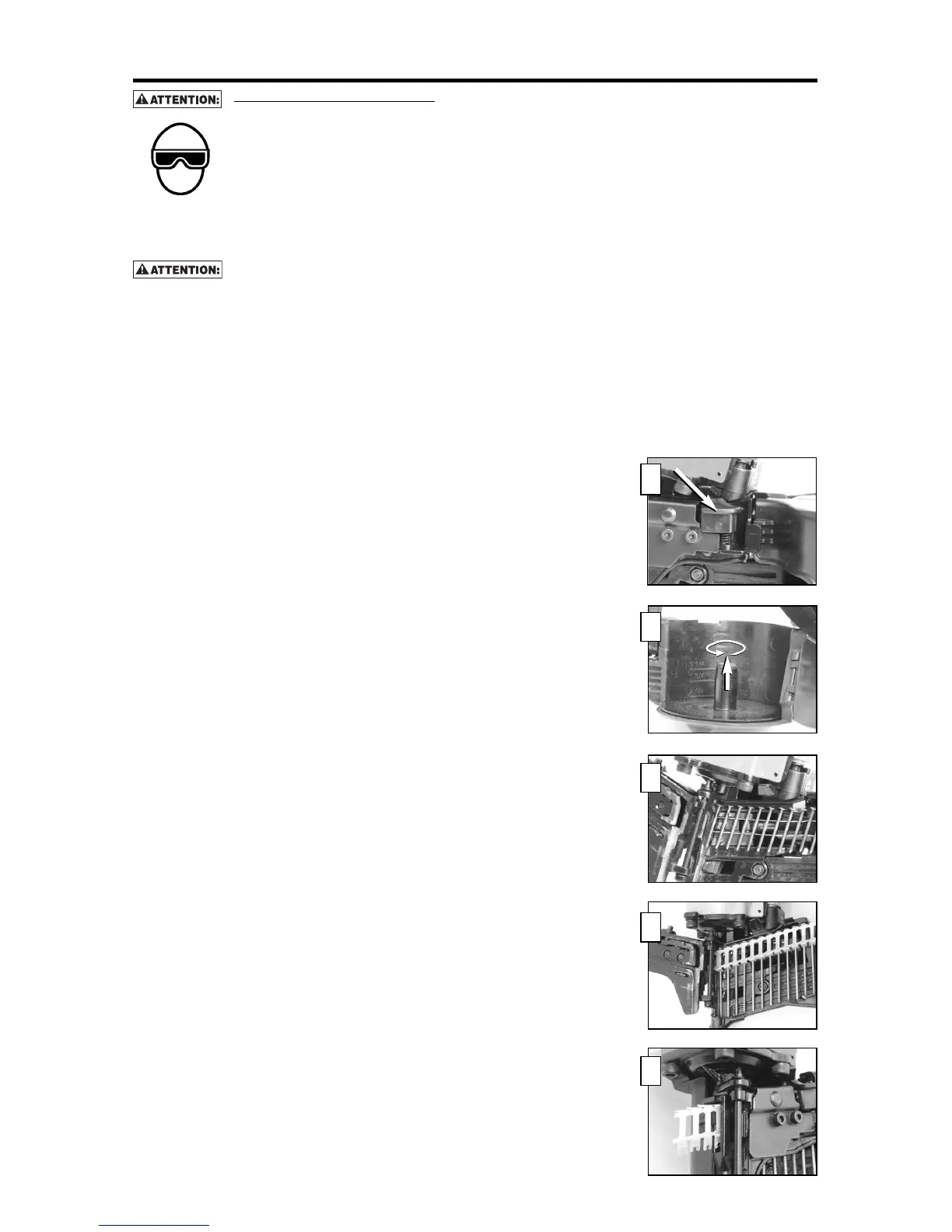 d’alimentation. Placez le premier clou devant la dent avant du cliquet