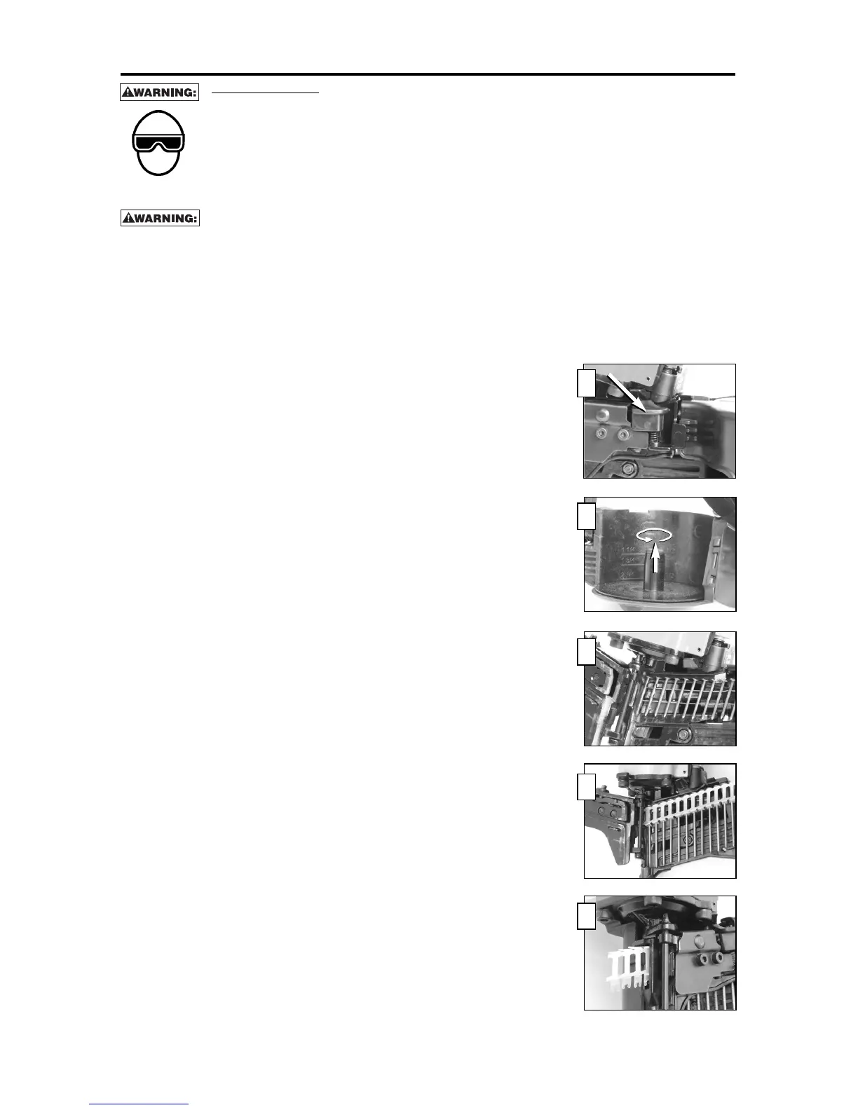 • Do not pull the trigger or depress the trip mechanism while loading the tool.