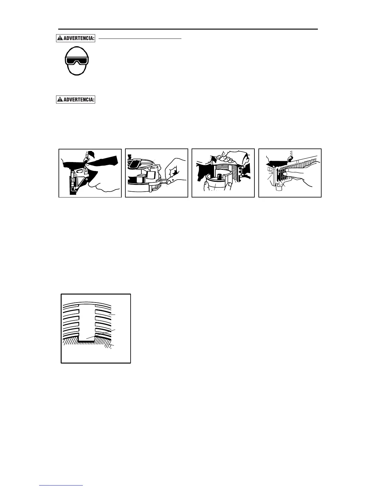 cargar, operar o hacerle servicio a esta herramienta. La protección para los ojos es
