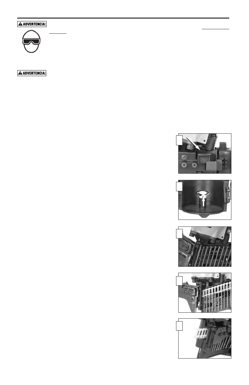 • No hale el gatillo ni oprima el mecanismo de disparo al cargar la herramienta.