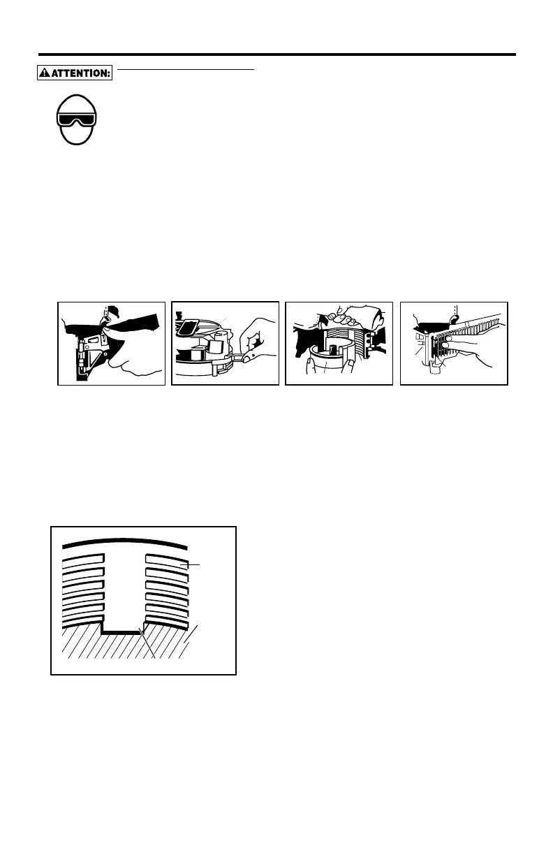 • Ne jamais placer la main ou toute autre partie du corps dans la zone d’éjection des clous