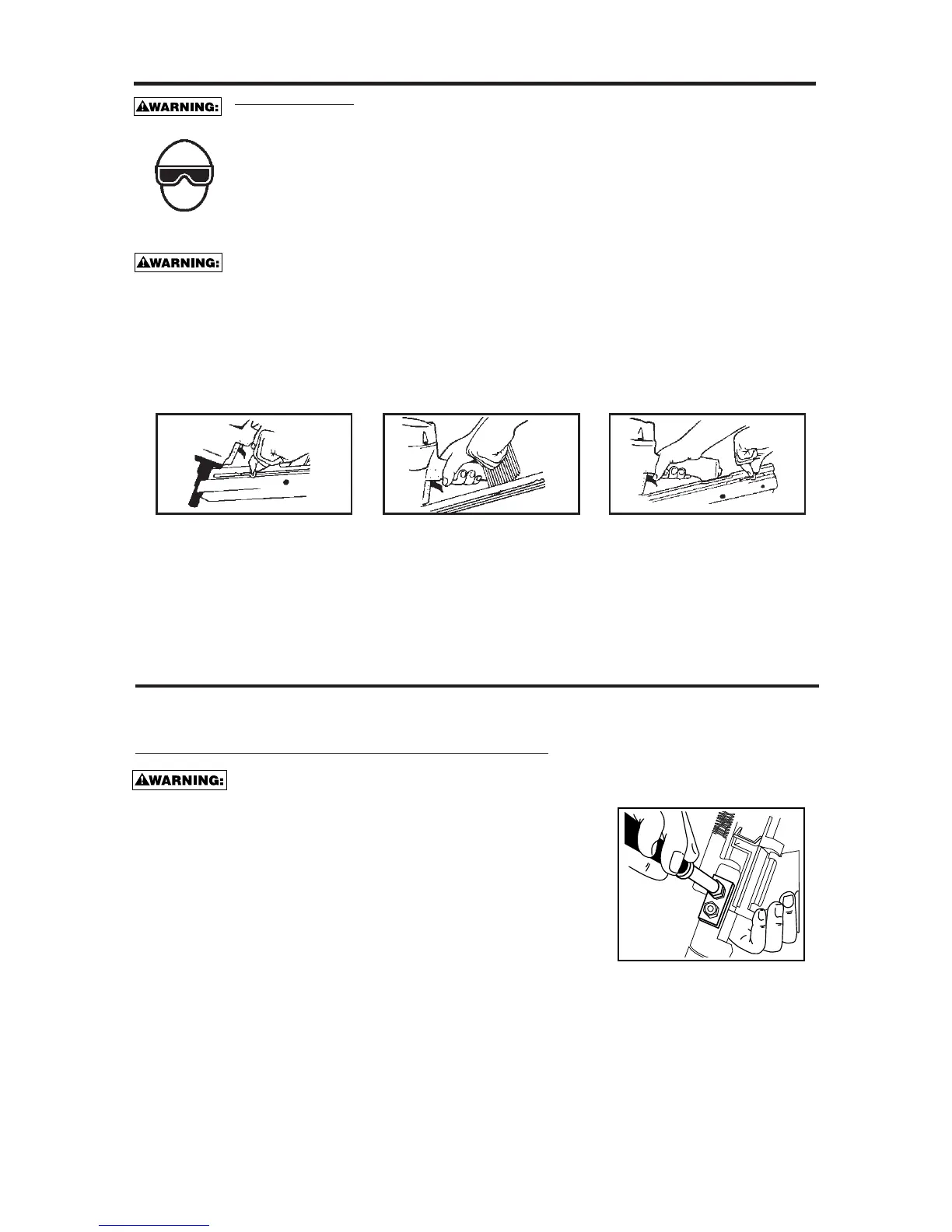 • Do not pull the trigger or depress the trip mechanism while loading the tool.