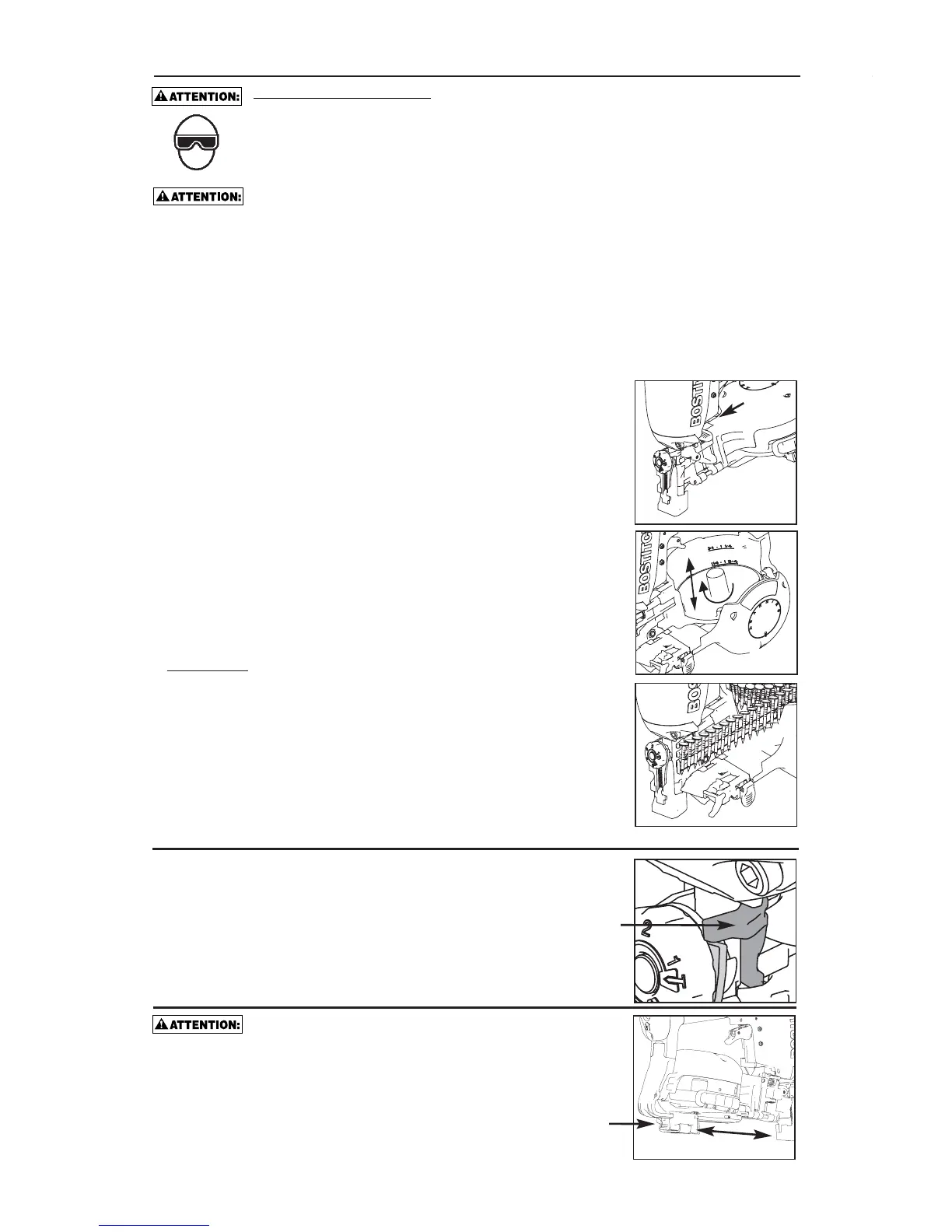 • Ne placez jamais la main ou une partie quelconque du corps sur la trajectoire de sortie des dispositifs de fixation