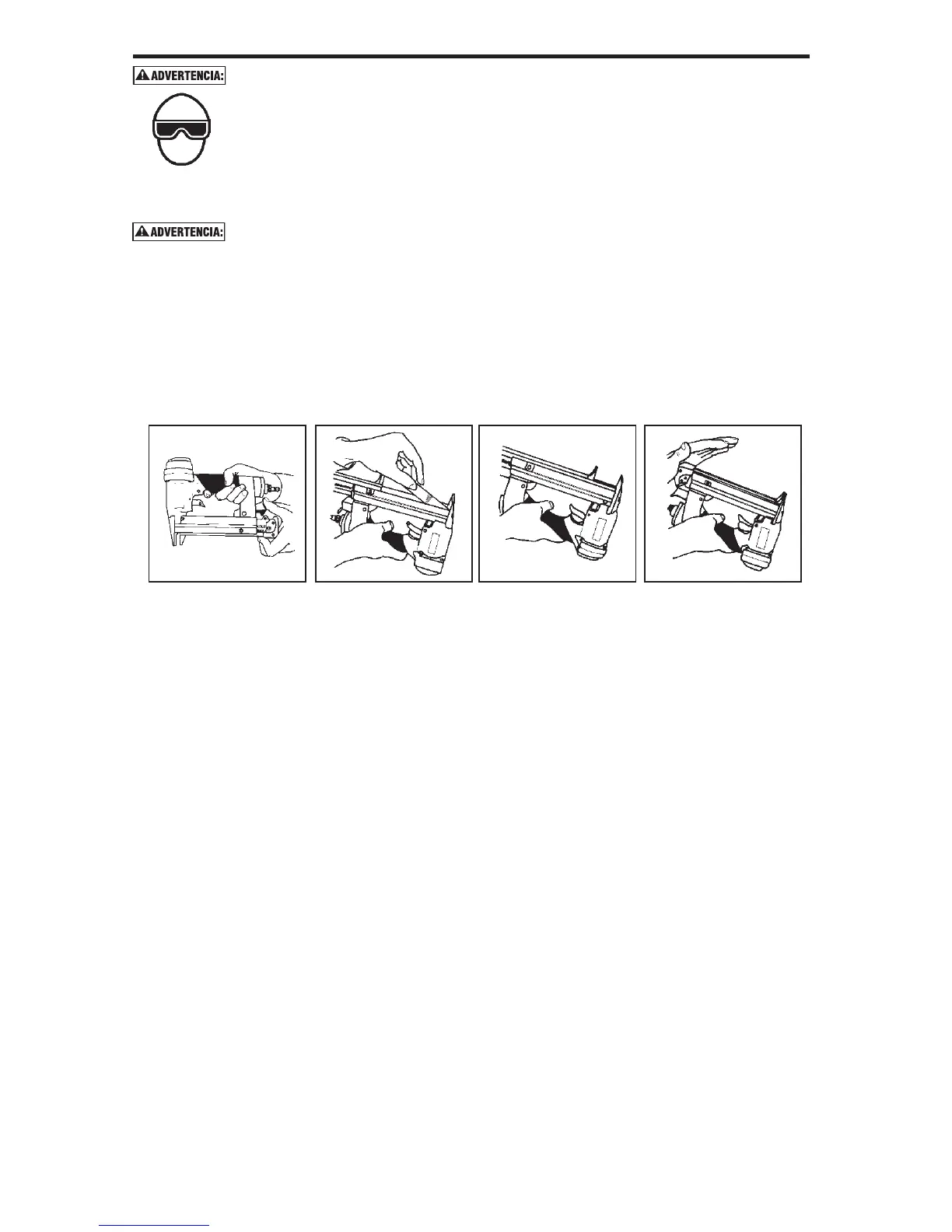 • No hale el gatillo ni oprima el mecanismo de disparo al cargar la herramienta
