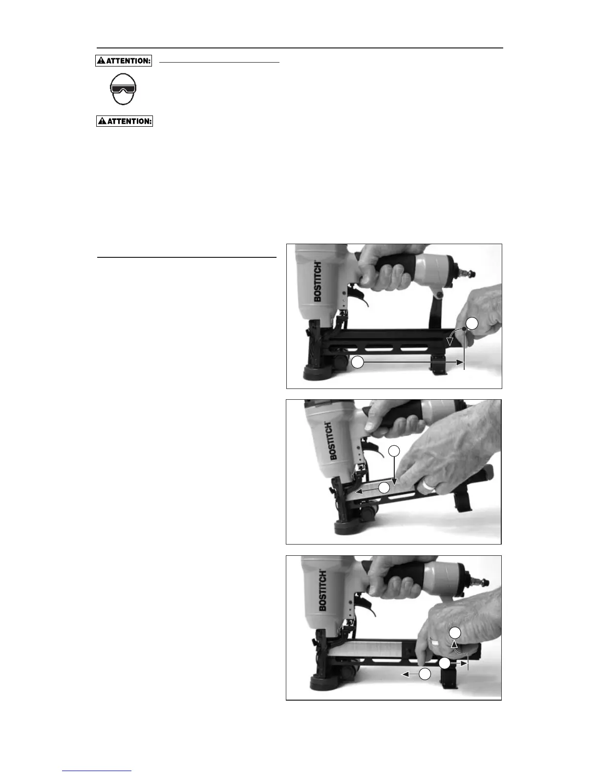 • Ne jamais appuyer sur la gâchette ni abaisser le mécanisme de butée en chargeant l’outil.