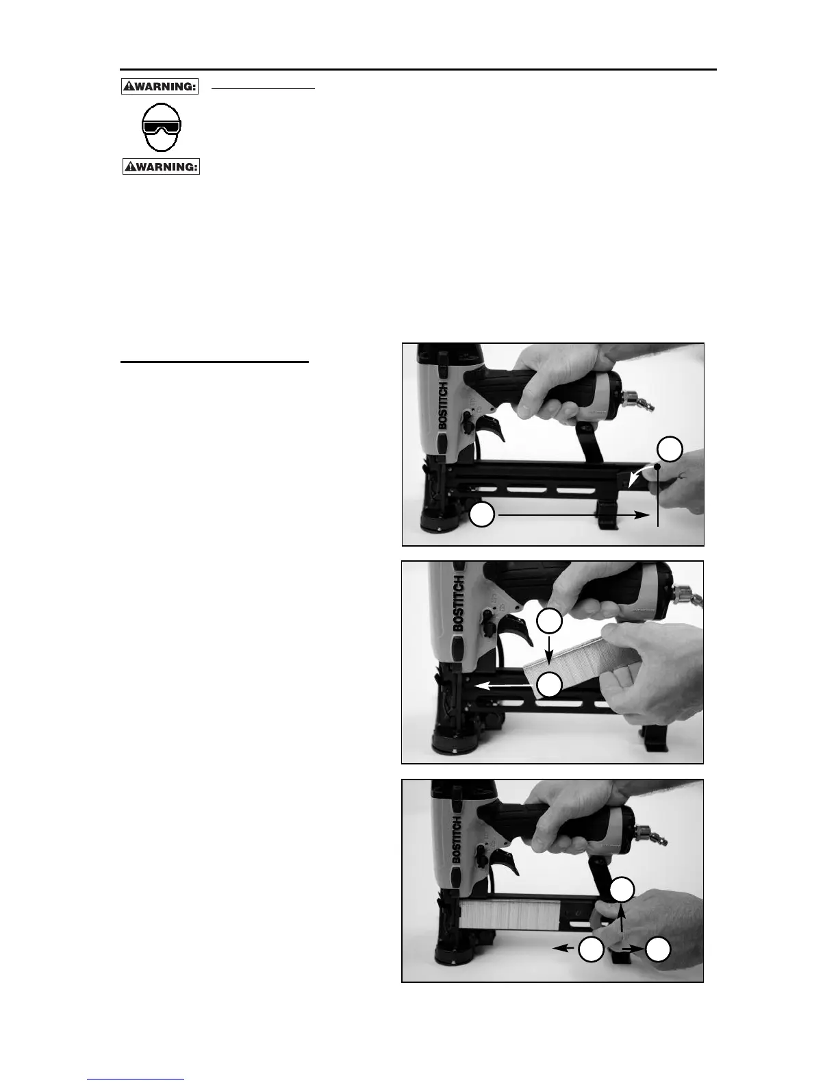 • Do not pull the trigger or depress the trip mechanism while loading the tool.