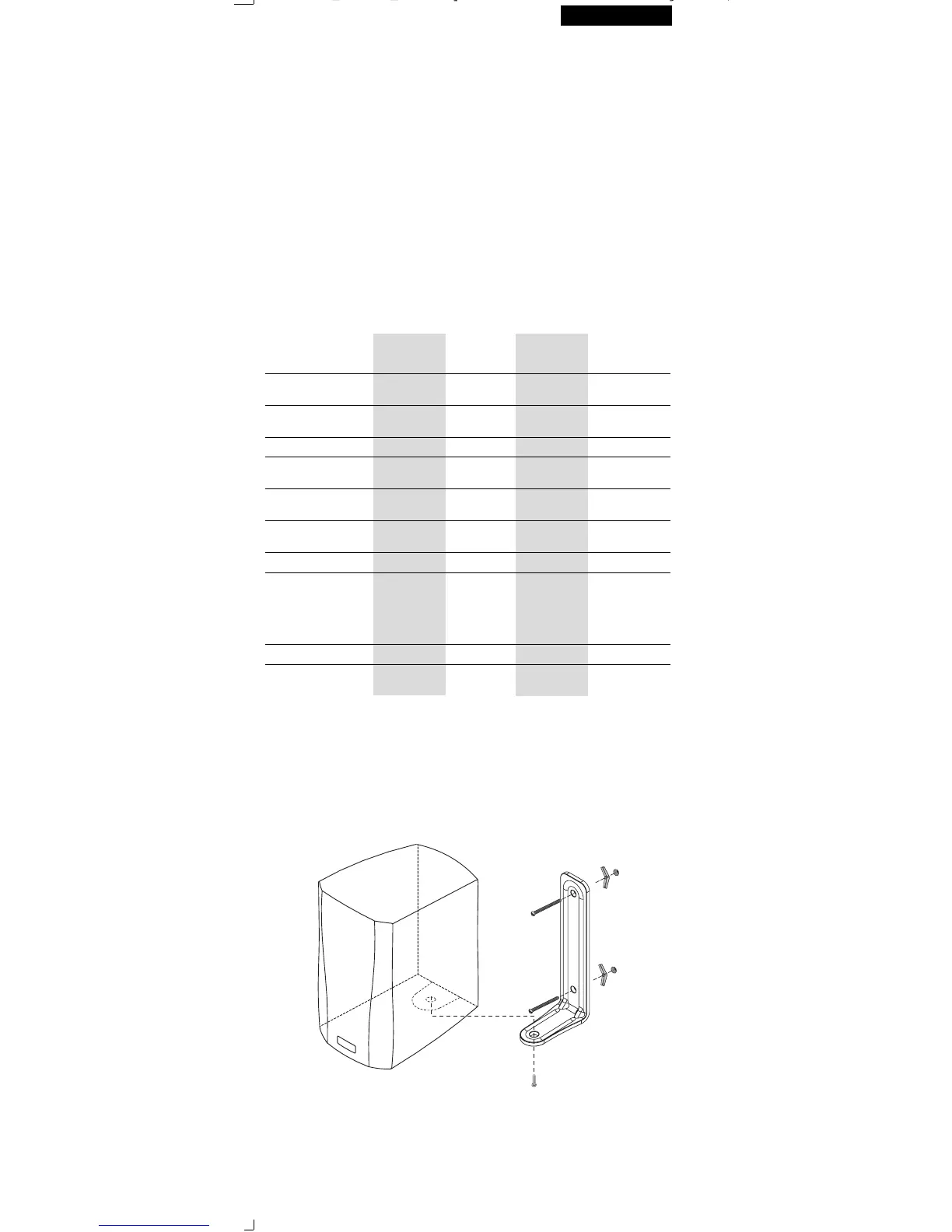 • Fixez le support de montage mural au bas de l’enceinte avec la vis comme illustré.