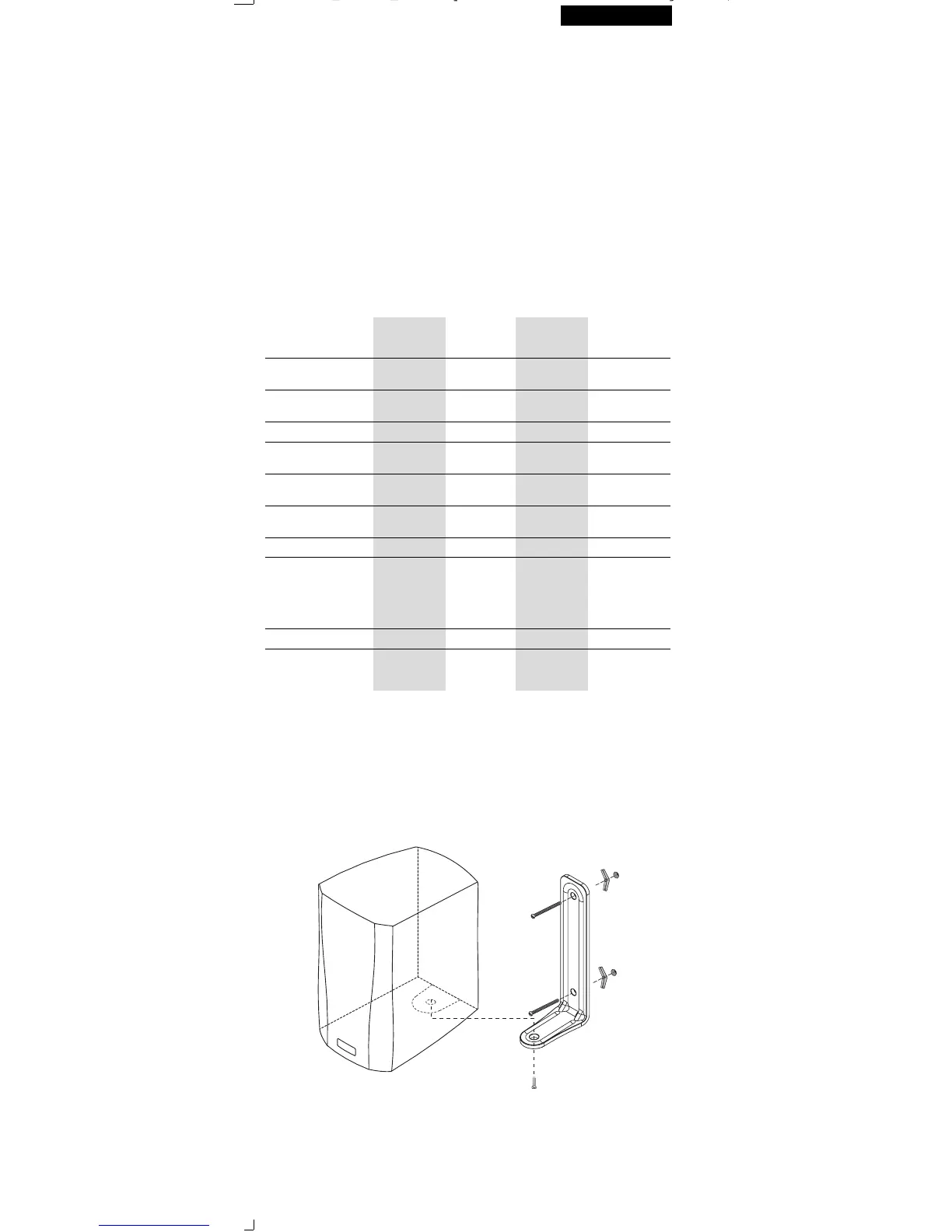 • Den Wandeinbaubügel mit der Schraube wie dargestellt unten am Lautsprecher befestigen.