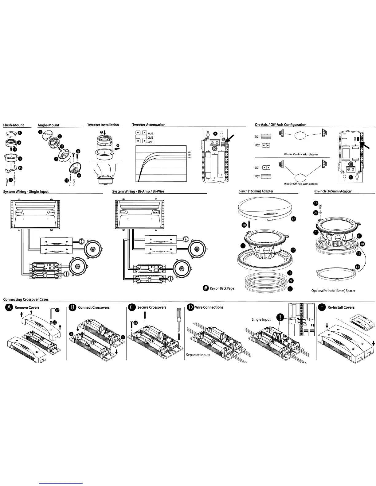Boston Acoustics SR60 - Tweeter Installation; Tweeter Attenuation; On-Axis; Off-Axis Configuration; System Wiring - Single Input