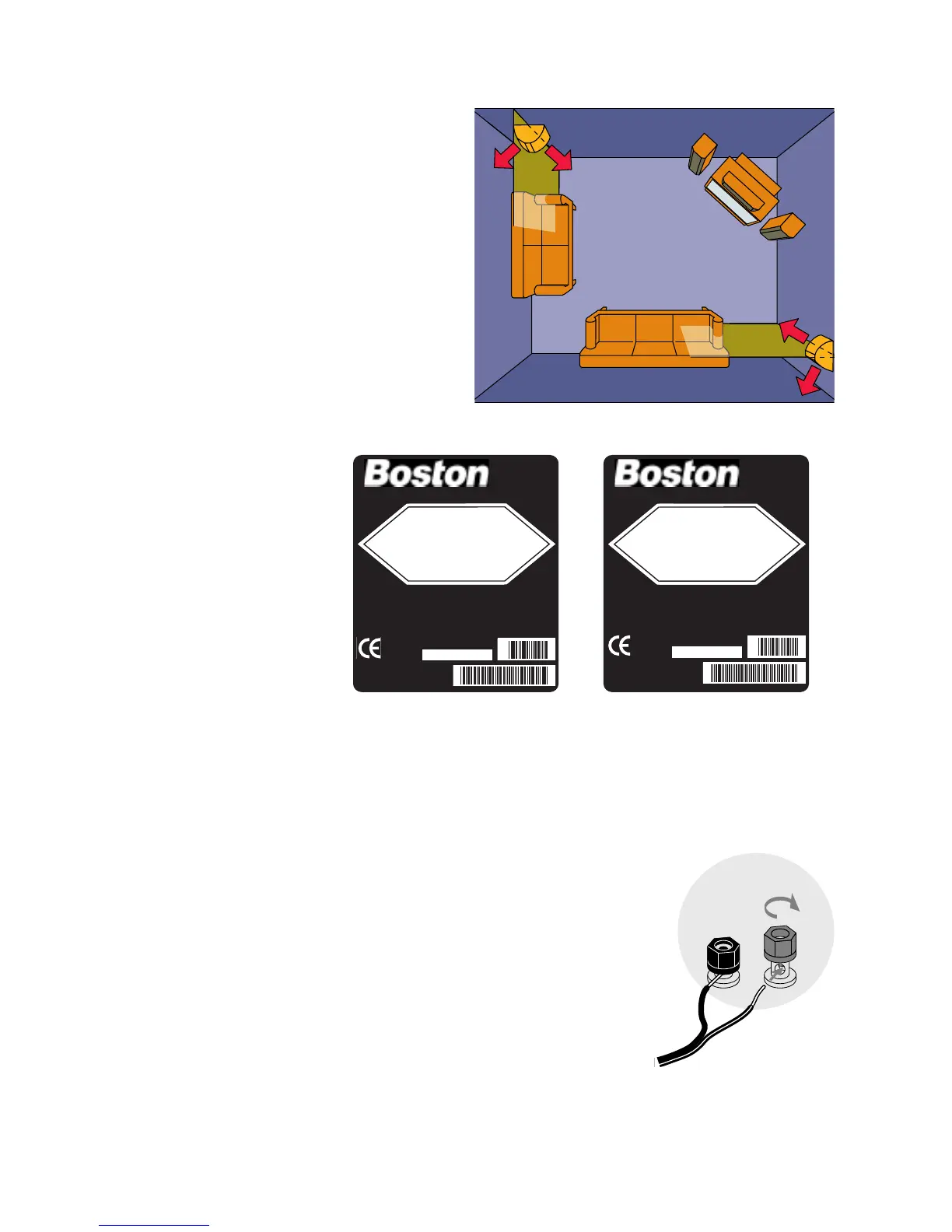 Connect the speaker’s terminals to those on the amplifier or